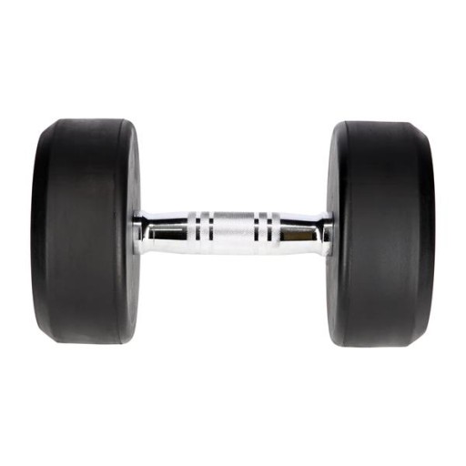 HG PRO to okrągłe hantle gumowane.Trening wykonany hantlami, daje możliwość zaangażowania większej ilości mięśni, a co za tym idzie, uzyskania lepszych rezultatów. Ich kształt, pozwala na wykonanie, bardzo szerokiego zakresu ruchu, z kolei profilowany, precyzyjnie radełkowany uchwyt, zapobiega ślizganiu się dłoni. Gwarantuje to, pewny chwyt przez cały trening. Gumowe pokrycie hantli, redukuje hałas, a także ryzyko uszkodzenia podłogi w trakcie uderzenia.