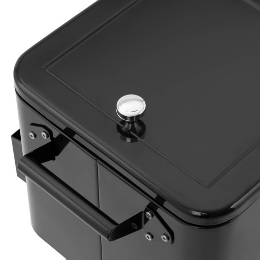 Obudowa z tworzywa sztucznego chłodziarki na napoje spełnia wszystkie standardy higieniczne obowiązujące w branży gastronomicznej. Gładkie powierzchnie są łatwe w czyszczeniu, co gwarantuje, że będą się dobrze prezentować przed klientelą. Wodę i inne płyny z wnętrza usuniesz przez zawór spustowy. Uchwyty po bokach ułatwiają przenoszenie pojemnika. Chłodziarka ogrodowa ma zamontowane cztery kółka, dzięki czemu bezpiecznie i wygodnie przetransportujesz ją do miejsca użytkowania. Dwa hamulce skutecznie zapobiegają przemieszczaniu się coolera podczas wyjmowania napojów i żywności.