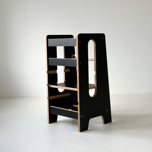 Jego trzy-stopniowa regulacja podestu umożliwia dopasowanie wysokości do rosnących potrzeb Twojego dziecka, pozwalając mu na samodzielne dotarcie do kuchenki czy zlewu.