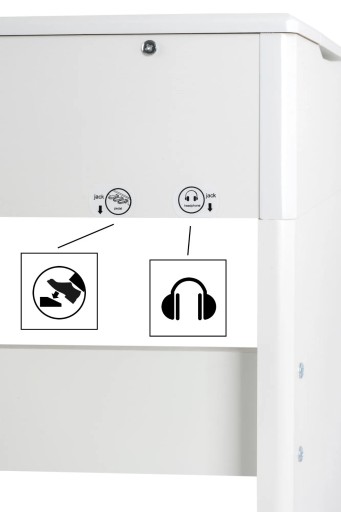 Podobnie jak skrzydło akustyczne, pianino cyfrowe DP-18 ma trzy pedały, których można użyć do specyficznego wpływania na brzmienie utworów, które grasz. Zwykle najczęściej używany jest pedał sustain po prawej stronie. Pozwala zabrzmieć wszystkim tonom, podczas gdy środkowy pedał sostenuto tylko wydłuża już zagrane tony. Pedał po lewej zmniejsza głośność i tworzy bardziej miękki dźwięk.