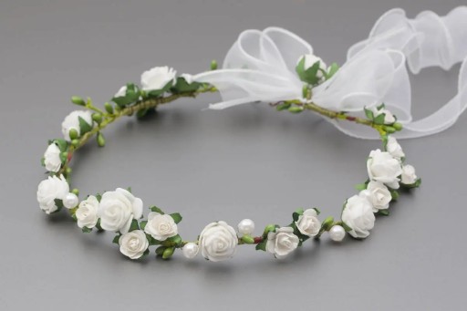 Biała kolorystyka, delikatne kwiatki i subtelny tiulik czynią ten wianek kwintesencją dziecięcej niewinności i elegancji. Idealnie dopełni wyjątkową stylizację, nadając jej niepowtarzalny urok.