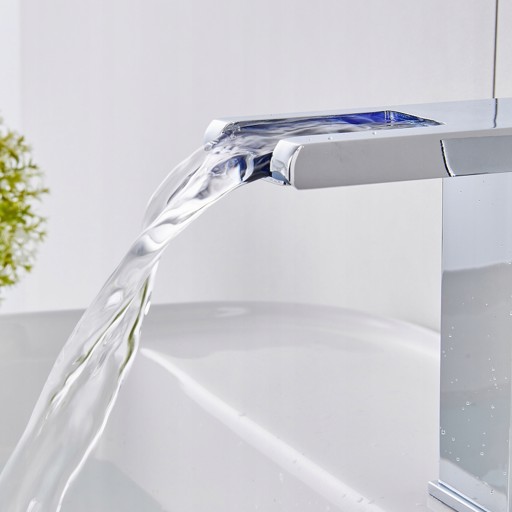 Mechaniczna bateria umywalkowa, stojąca, jednouchwytowa z podświetlaną wylewką z wodospadu. Materiał jaki użyto do produkcji do przerwy. Zestaw zawiera 2 wysokiej jakości wężyki oraz komplet akcesoriów do montażu. Sam styl dostosowany do aktualnych trendów - jest schludnie i elegancko.