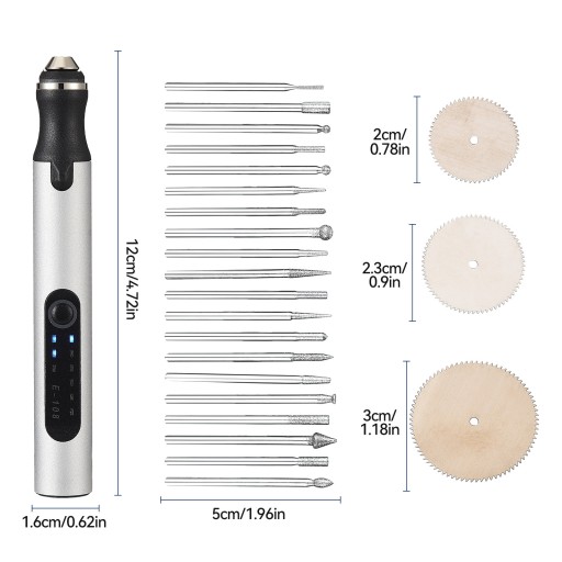 - Pakiet zawiera kompletne akcesoria do grawerowania, w tym 20 wierteł/bitów szlifierskich, 3 płyty tnące i 16 szablonów grawerowania.