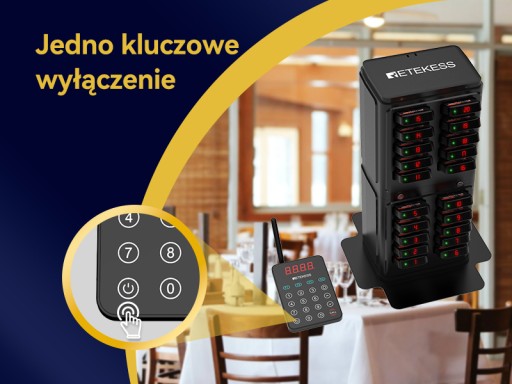 - Przypomnienie o odliczaniu czasu; automatycznie zachęca klientów do odebrania posiłków; brzęczyk restauracyjny rozpoczynający odliczanie po wyjęciu z bazy ładującej; i kiedy odliczanie zostanie zresetowane do 000; pager wyśle przypomnienie
