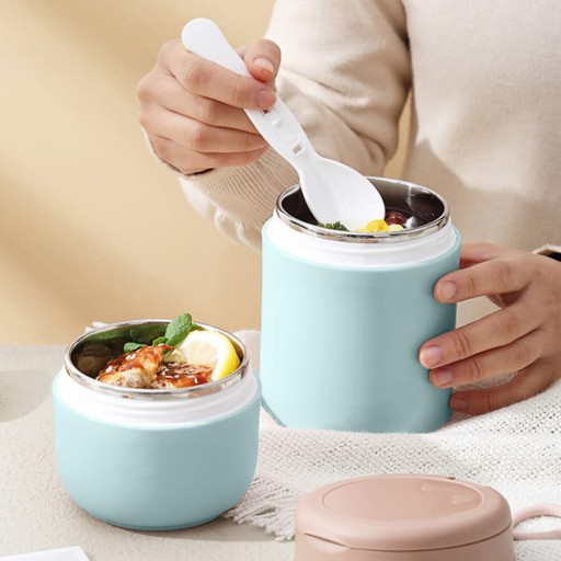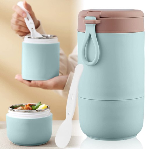 - Praktyczny kubek na jogurt z łyżeczką dla dzieci, pojemnikiem na drugie śniadanie i przegródką na płatki jogurtowe oraz pojemnikiem na gorącą żywność.