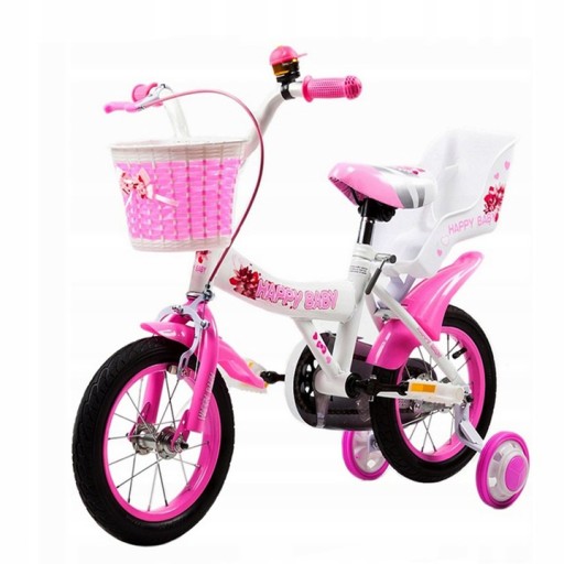 Rowerek posiada również praktyczne akcesoria, takie jak koszyk, dzwonek, osłona łańcucha, błotniki oraz miejsce na lalkę. Dzięki temu staje się nie tylko środkiem transportu, ale również narzędziem do kreatywnej zabawy i rozwijania wyobraźni.