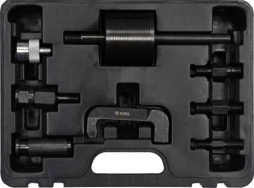 Pasuje do wtryskiwaczy takich producentów, jak: Bosch, Denso, Delphi i Siemens. Zestaw zawiera 8 elementów: młotek bezwładnościowy, przegub do pracy w trudno dostępnych miejscach oraz adaptery.