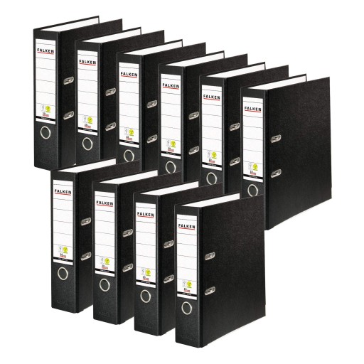 Falken10x Segregator PP-Color segregator biurowy z tworzywa sztucznego A4 szeroki 8 cm czarny. Wyprodukowano w Niemczech. Segregator Wegański Vegan Segregator szczelinowy Segregator z mechanizmem