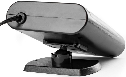 - Przystosowany do zasilania z gniazda zapalniczki o napięcie 12 V. Do wyboru funkcji służy przełącznik umieszczony na obudowie. Regulowany uchwyt mocujący na taśmę klejącą.