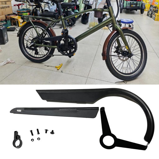 [Ochraniacz łańcucha rowerowego]: Osłona łańcucha rowerowego została zaprojektowana w celu ochrony łańcucha rowerowego przed kurzem, wodą, kamieniami itp.
