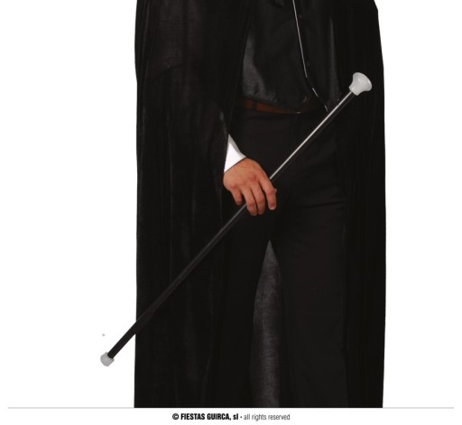 Laska zakończona białą gałką. Może posłużyć jako uzupełnienie stroju gangstera, pimpa, alfonsa lub każdego innego, który potrzebuje laski. Idealnie sprawdzi się na balach karnawałowych, imprezach tematy