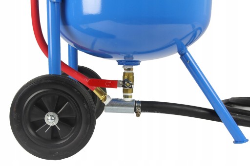 Piaskarka wyposażona została w gumowe kółka jezdne oraz wygodne rączki ułatwiające jej przemieszczanie i zwiększające komfort pracy operatora urządzenia.