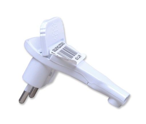 Jest to płaska wtyczka kątowa bez uziemienia WT-11P firmy Plastrol z rozkładanym uchem ułatwiającym wyciąganie z gniazda.