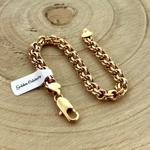 ✨ Przedstawiamy państwu unikalną, męską bransoletkę o splocie Garibaldi. Produkt został wykonany z najwyższej jakości stali chirurgicznej. Całość została pokryta prawdziwym 18 karatowym złotem. Ten model bransoletki z pewnością doceni każdy mężczyzna. Bransoletka jest solidna i wytrzymała, więc spokojnie posłuży długi czas.
