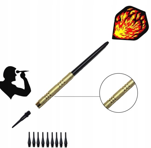 ✅ Kompletny zestaw do gry w darta - wyposażony w rzutki, zapasowe groty oraz piórka.
