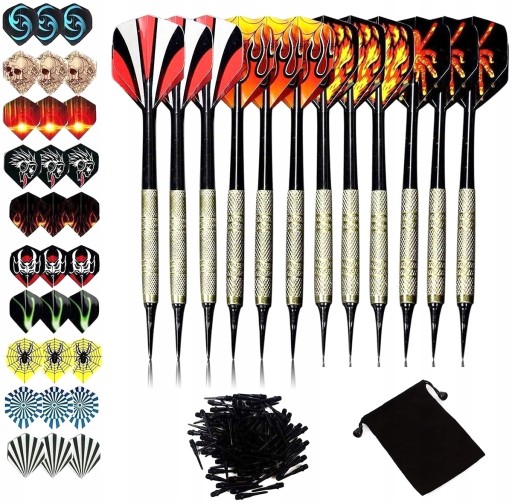 ✅ Kompletny zestaw do gry w darta - wyposażony w rzutki, zapasowe groty oraz piórka.