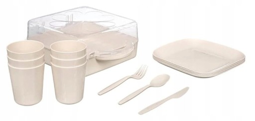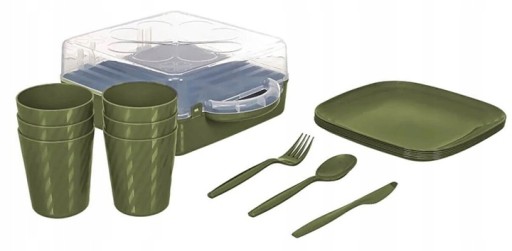 Zestaw składa się z 32 elementów, w tym talerzy, kubków, sztućców i innych niezbędnych akcesoriów, zapewniając wszystko, co potrzebne do skomponowania pełnego posiłku. Dzięki temu, że jest lekki i poręczny, możesz go zabrać ze sobą wszędzie, gdzie tylko zechcesz.