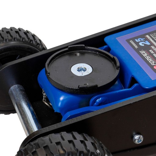 Jest to podnośnik dwutłokowy, który zapewnia bardziej wydajne i szybsze podnoszenie samochodu lub innego pojazdu. Dzięki dwóm tłokom podnośnik ten zapewnia większą siłę podnoszenia i lepszą stabilność podczas użytkowania. Podnośnik samochodowy jest wyposażony w powiększone koła, które umożliwiają pracę na nierównych lub szorstkich powierzchniach (śnieg, piasek, błoto, nierówny asfalt itp.), a także wygodny uchwyt do przenoszenia i składany uchwyt, ułatwiający przechowywanie.