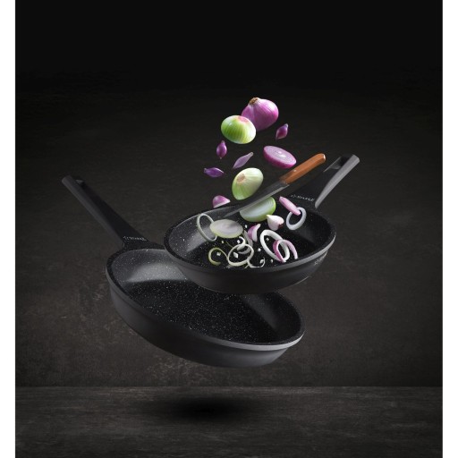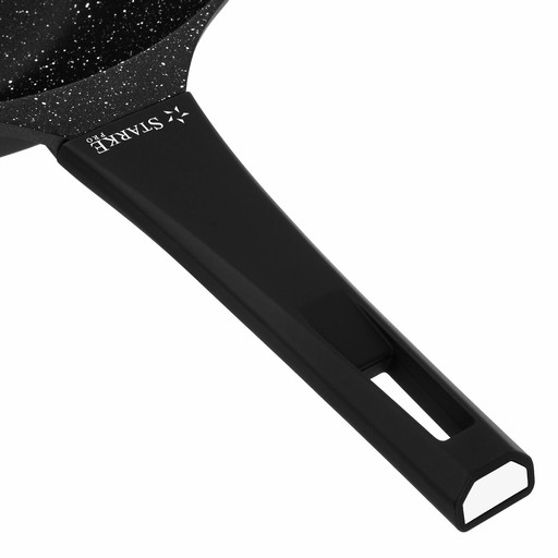 Do jej stworzenia wykorzystano technikę jednorodnego odlewu die cast. Dzięki temu jest świetnie wyważona i bardzo wytrzymała pod względem mechanicznym oraz termicznym. Jej wysoka jakość, twardość oraz 3-warstwowa struktura zostały opracowane przez firmę WEILBURGER. Ma też oznaczenie PFOA Free. Energooszczędność daje dno indukcyjne o grubości 4,5 mm. Powłoka nieprzywierająca umożliwi ci dodatkowo smażenie na niewielkiej ilości tłuszczu oraz bezproblemową pielęgnację. Zniesie przy tym aż 8000 cykli ścierania, czyli czterokrotnie więcej niż zwykłe naczynia non-stick dostępne na rynku. Przenoszenie i użytkowanie modelu ułatwia rączka soft touch, która się nie nagrzewa i nie wyślizguje z dłoni. Produkt ma też dodatkowy, krótki uchwyt, tzw. helper.