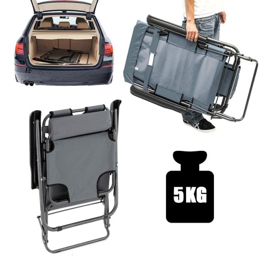 ⭐ Składany fotel leżak ogrodowy - 3 pozycyjny z zagłówkiem⭐