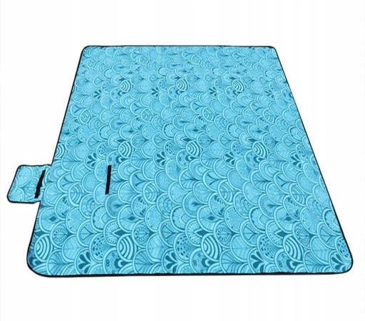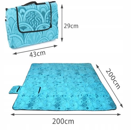 Koc piknikowy plażowy Active Hobby 200 x 200 cm z folią termiczną, mata piknikowa plażowa uchwytem. Wzór Blue Boho.