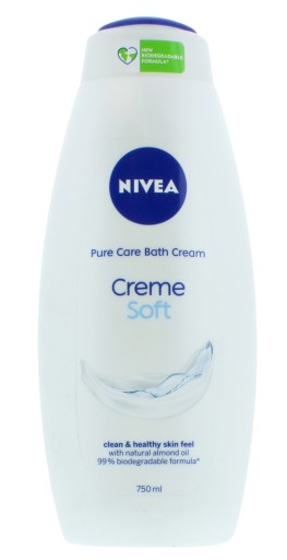 Nivea Creme Soft otula skórę pianką przez długi czas. Pielęgnuje olejkiem migdałowym i ma łagodny, przyjemny zapach. Kompatybilność ze skórą neutralnego dla skóry dodatku do kąpieli została potwierdzona dermatologicznie.