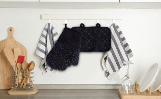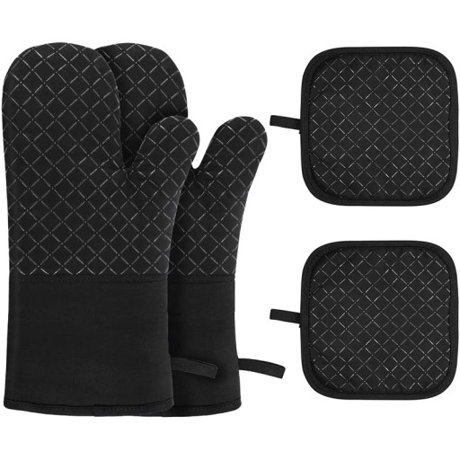 - Czarne rękawice kuchenne bez mocnych, ostrych zapachów. Ten wspaniały zestaw rękawic kuchennych zawiera 2 rękawice kuchenne i 2 rękawice kuchenne.