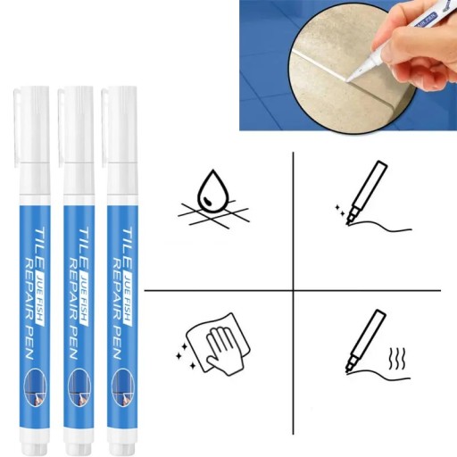3️⃣ Pióro do fug doskonale sprawdzi się w odświeżaniu i upiększaniu szczelin w płytkach, jak również w rysowaniu na oponach. Możesz użyć go, aby dokładnie pomalować fugi, zmieniając ich kolor, nadając powierzchni jasny, czysty wygląd, lub poprawić czytelność oznaczeń na oponach.