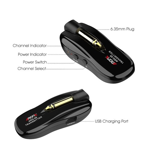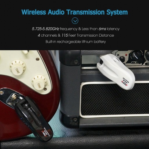 Bezprzewodowa transmisja audio system przeznaczony dla gitary, basy i innych instrumentów z 6.35mm audio gniazdo wyjściowe.