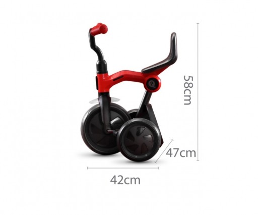 CHARAKTERYSTYKA PRODUKTU: Stalowa rama obłożona plastikiem Pedały w przednim kole Odporne na przebicia koła EVA Błotnik nad przednim kołem Szybkie i łatwe składanie za pomocą przycisku Siedzisko regulowane Regulowana kierownica Antypoślizgowe rączki z osłonkami Wygodny uchwyt w oparciu siedziska do przenoszenia rowerka Pojemnik na zabawki Dostępna kolorystyka grey, red, yellow Przedział wiekowy 2-6 lat DANE TECHNICZNE: Wysokość do siedziska od ziemi - 30 cm Wysokość całkowita - 55 cm Wysokość po złożeniu – 58 cm Wysokość oparcia - 10 cm Odległość od siedziska do kierownicy regulowana 15cm -18 cm Odległość od siedziska do pedałów 31 cm Średnica przedniego koła – 9 cali Średnica tylnych kółek - 7,5 cali Szerokość rowerka / rozstaw tylnych kół - 47 cm Szerokość kierownicy 40 cm Długość rowerka- 67,5 cm Wymiary po złożeniu: 47 x 43 x 56 cm Maksymalne obciążenie do 25 kg Waga: 3,8 kg Spełnia europejskie normy bezpieczeństwa