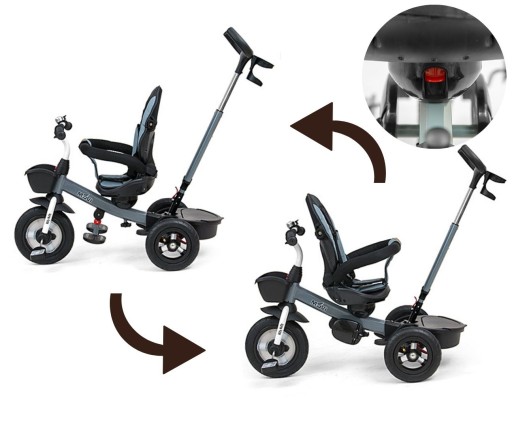 MOVI jest stabilny i bezpieczny, posiada nowoczesną konstrukcję, wygodne wyprofilowane obracane o 360 stopni siedzisko, które umożliwi podróż przodem lub tyłem do kierunku jazdy. Rowerek został wyposażony w barierkę zabezpieczająca dziecko przed wypadnięciem, trzypunktowe pasy bezpieczeństwa oraz podnóżki a pompowane koła umożliwiają cichą i komfortową jazdę. Po zdemontowaniu rączki, barierek, budki i pokrowca na siedzisko MOVI będzie służył jako rowerek trójkołowy. Dzięki funkcji „wolnego koła” dziecko może swobodnie pedałować, a kierownica dla rodzica nadal może korygować prędkość przemieszczania.