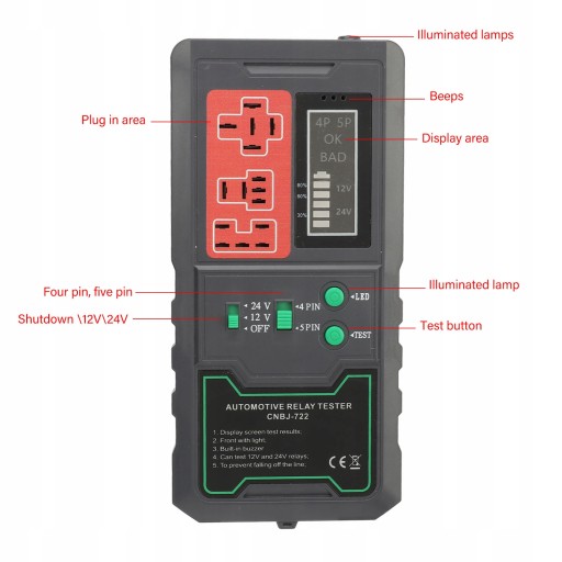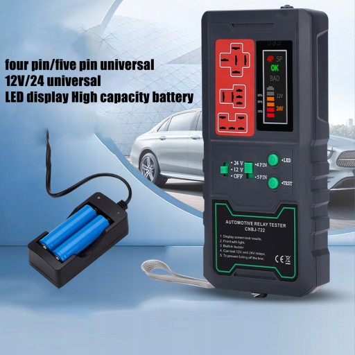 4. Wydajny i niezawodny: Podstawową funkcją tego testera jest określenie normalnego funkcjonowania przekaźników samochodowych. Dzięki szybkiej analizie wyświetlacza umożliwia użytkownikom rozróżnienie dobrych i uszkodzonych przekaźników 12 V i 24 V. Ta funkcja oszczędza czas i poprawia skuteczność diagnostyki.