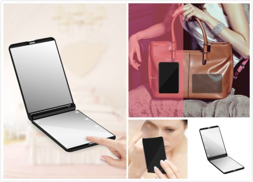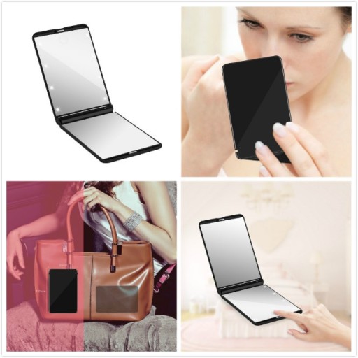 ✅1 * Składane lusterko do makijażu z podświetleniem LED Przenośne kompaktowe lusterka kosmetyczne z 8 diodami LED (czarne)