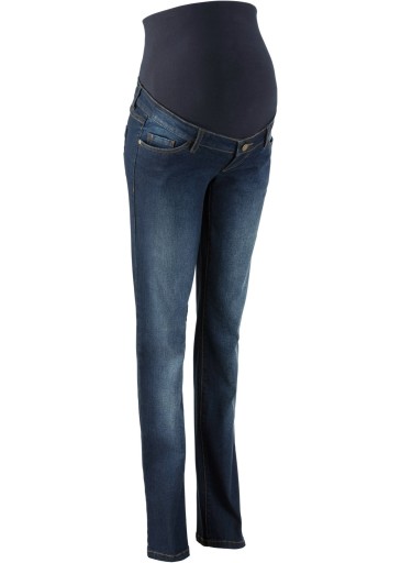 Dżinsy ciążowe w fasonie z 5 kieszeniami z przodu i z tyłu. W talii elastyczny pasek z dzianiny shirtowej, dopasowujący się do rosnącego brzucha ciążowego.