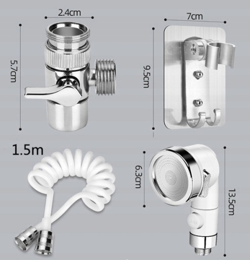 Ta głowica prysznicowa jest wyposażona w kompletny zestaw, w tym 1 głowicę prysznicową, 1 prysznic, wąż 1,5 metra, 1 samodzielny stent prysznicowy i akcesoria instalacyjne. Nadaje się do portu oleju spiralnego G1/2, F20, F22, M20, M22, M24. Można zainstalować w kuchni, łazience, ogrodu, garażu itp. Jest bardzo odpowiedni do czyszczenia i umycia włosów.