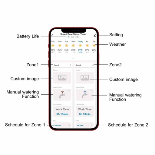 ✅5. Timer zraszacza WiFi: dodaj inteligentny licznik czasu do centrum Wi-Fi za pośrednictwem aplikacji, możesz tworzyć harmonogram zraszaczy w aplikacji w dowolnym miejscu i czasie.