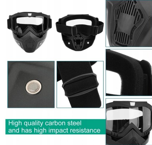 Okulary charakteryzują się dużą wytrzymałością i posiadają funkcje antybalistyczne, przeciwmgielne i antyultrafioletowe.