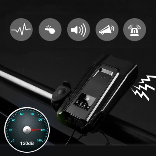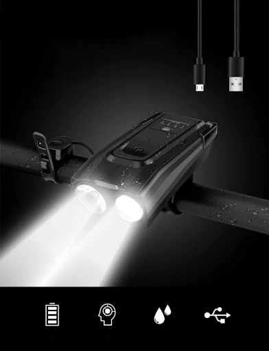 WODOODPORNA LAMPKA ROWEROWA Wodoodporna lampka rowerowa o mocy świecenia aż 800 lumenów z pojemnym akumualatorem gwarantuje bezpieczeństwo i komfort jazdy rowerem po zmroku. Zintegrowane diody LED T6 zapewniają doskonałe oświetlenie w każdych warunkach – dzięki niemu jazda rowerem w nocy czy w przypadku ograniczonej widoczności będzie wygodna i bezpieczna. Lampkę łatwo jest zdjąć z roweru i naładować, przy pomocy przewodu USB. Jej obudowa jest wodoodporna, urządzenie można więc używać nawet podczas deszczu! Urządzenie posiada ponadto bardzo głośny - aż 120 dB! - klakson. Przy jego pomocy unikniesz wielu niebezpiecznych zdarzeń!