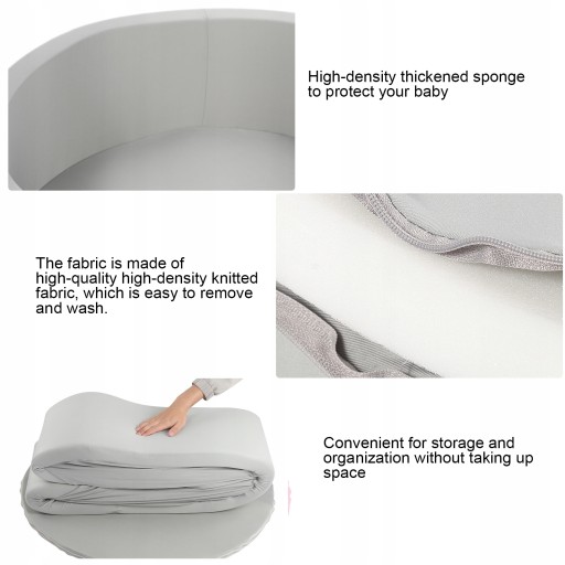 Funkcja:1. Bezpieczny i łatwy w czyszczeniu basen z piłeczkami wykonany jest z nietoksycznej gąbki pamięciowej, bezpiecznej dla dzieci.