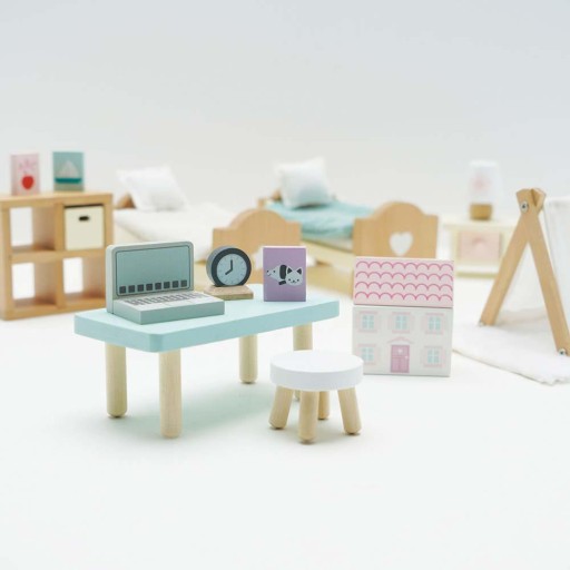 Zestaw mebli do pokoju dziecięcego składa się z 24 elementów i jest idealnie dopasowany do różnorodnej oferty zachwycających domków dla lalek Le Toy Van. Wykonany z drewna certyfikowanego przez FSC®, ten zestaw charakteryzuje się nowoczesnym designem, który z pewnością doda współczesnego wyglądu do miniaturowego świata zabaw.