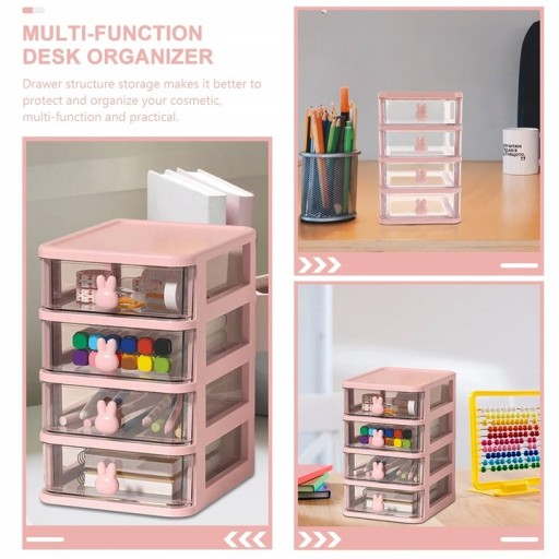 Wielowarstwowy organizer na biurko może być używany do klasyfikowania i przechowywania kosmetyków, artykułów piśmiennych i innych drobiazgów.
