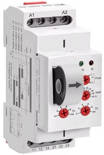 - Tt potencjometr do regulacji opóźnienia załączenia przekaźnika po wykryciu przekroczeniu prądu (