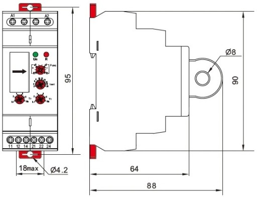 - Wymiary 36x90x64 mm (2 moduły na szynę DIN)