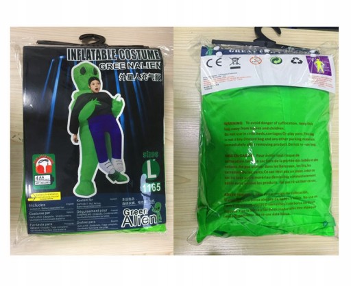 - W środku wiatraczek nadmuchujący strój - dmuchawa na baterie. Wiatraczek służący do nadmuchania kostiumu wymaga baterii 4xAA, których nie ma w zestawie.