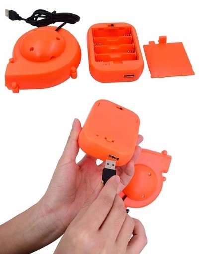 8. Podłącz port USB do pojemnika na baterie lub ładowarki.