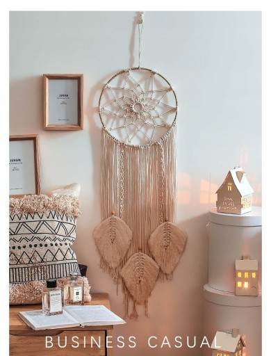 Łapacz snów zawieszony w salonie ma generalnie stosunkowo duże rozmiary, pasuje do tego samego stylu domu, a efekt jest piękny, dzięki czemu jest zarówno piękny, jak i daje dobre rezultaty.