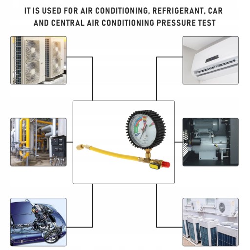 Służy do próby ciśnieniowej klimatyzatora, czynnika chłodniczego, samochodowego i centralnego klimatyzatora.