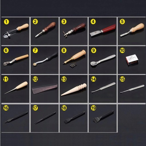 18PCS Leather Craft Tools Kit Stitching Sewing Carving Work Punch Saddle Leathercraft Accessories for DIY Hand Leather Working
