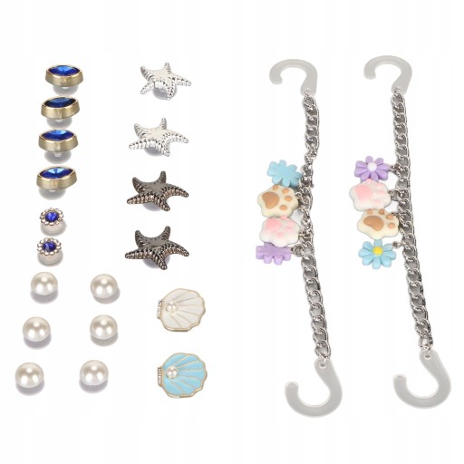 5. Lista rzeczy do spakowania: Zestaw klipsów do butów zawiera łańcuszki, rozgwiazdy, muszelki, ozdoby z koralików, łącznie 20 sztuk, można je dowolnie dopasowywać, mogą być używane jako piękny prezent dla przyjaciół, dziewczyn, matki itp., urocze i atrakcyjne.