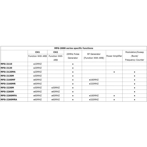 - Rodzaj sygnału wyjściowego: Arbitralny, Sinus, Prostokątny, Trójkąt, Impulsowy